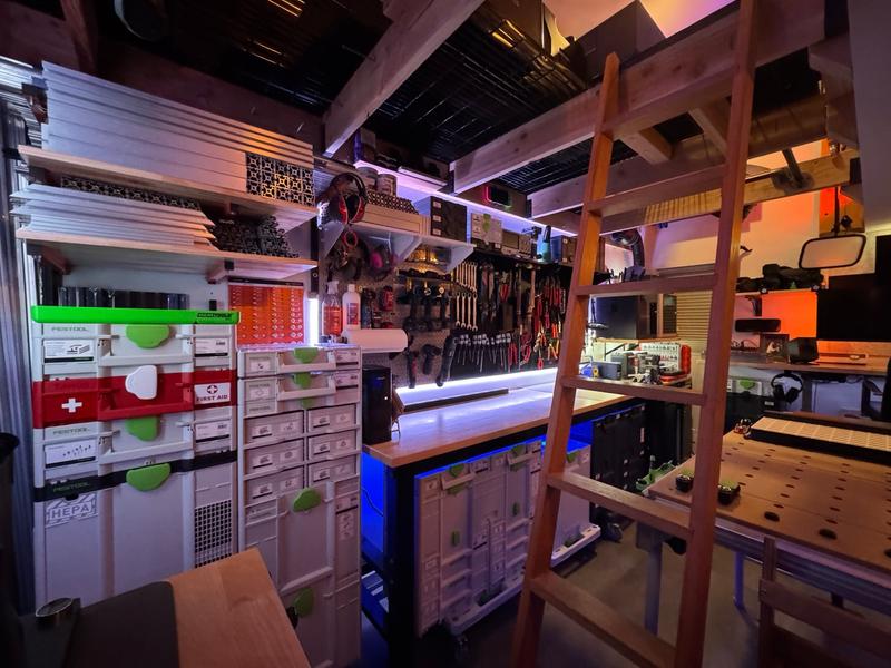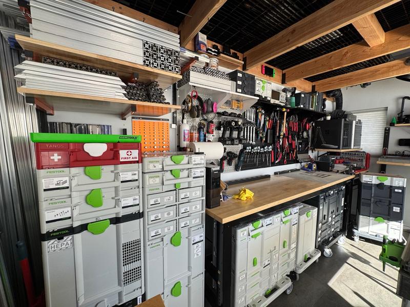 One of our community members just finished building their workshop and home office — a compact accessory dwelling with a main floor, a loft, a desk, and a full workshop. The kind of space that has to do everything without feeling like chaos. Their solution? Build the whole thing around Systainer from day one.