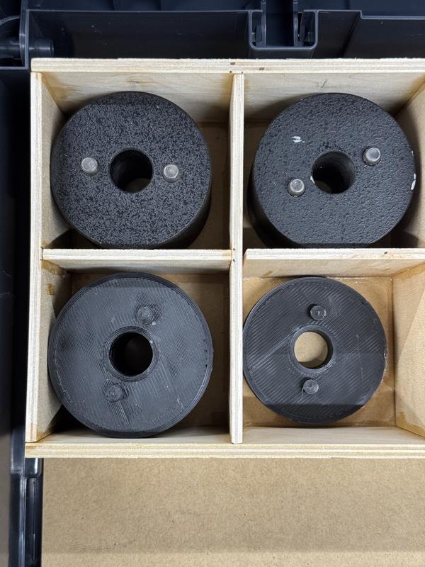 Inside, a 15 mm EPP foam lid insert protects the contents. The base combines MDF and plywood cut into a custom grid to hold each weight and spacer securely, with the club resting up front. It’s all pinned and glued with CA glue like 2P-10 or Starbond for a rock-solid fit.