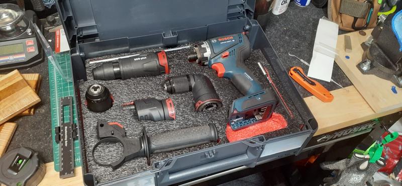 This kit fits my Bosch drill with all the Wiha driver and drill bits I have needed and used for prior installation and assembly. I used shadow foam to secure the drill and different attachments and ordered a custom Bosch decal for the systainer lid. I also made custom labels for the front of the systainer to show the interior contents.