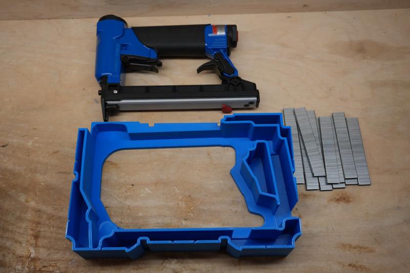 A Beck Fasco Fine Wire Stapler is fitted into a Systainer³ S 76 with a transparent lid. This 3D-printed insert—designed and produced by 10-Spot Tools—keeps every component locked in its place, making it effortless to grab, go, and get working.
