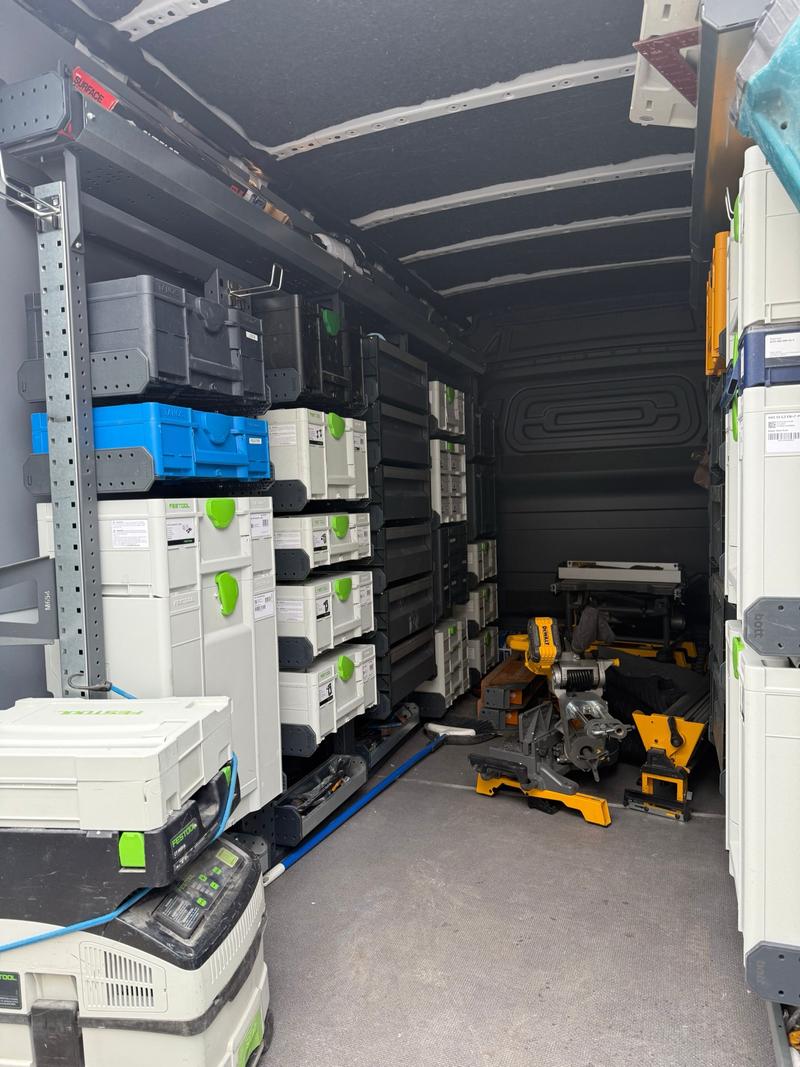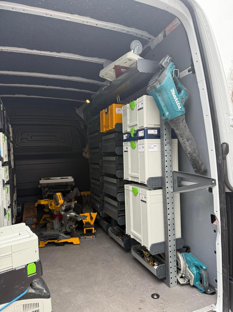 This bott SmartVan customer created his own package to fit his Sprinter 144 High Roof. The customer already had a mix of T-Loc and Systainer³ generation systainers, so the customer provided counts of what he needed to store and the bSv team created the appropriate racking system for him.