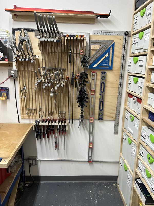 This user has achieved that, at least in this corner of his shop. He has large plywood cabinets with shelf pin holes all the way up. He is able to easily set the shelf height and insert his systainers and other tools and boxes.
