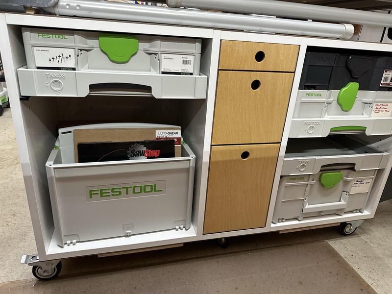 The two halves of the back-to-back cabinet can be disassembled and repurposed individually. SYS-AZ are mounted to hold systainers.