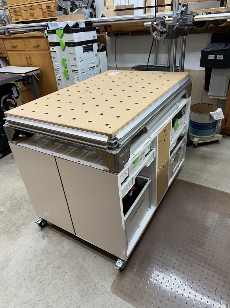 This is a Festool MFT mounted on top of cabinets. The MFT lifts off so it can be transported to job sites.